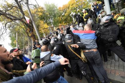 Az ország helyzetének destabilizálása az igazi célja a parlament előtt több napja tartó tüntetés szervezőinek, a reformok folytatásáról szóló követelésük pedig csak ködösítés volt - jelentette ki Petro Porosenko ukrán elnök pénteken egy kijevi rendezvényen.