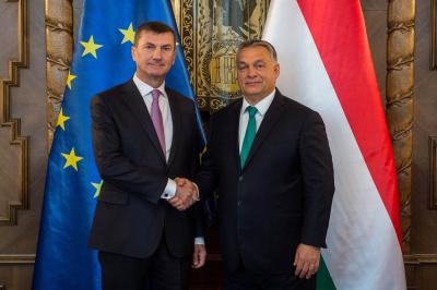 A Miniszterelnöki Sajtóiroda által közzétett képen Orbán Viktor miniszterelnök megbeszélést folytat Andrus Ansippal, az Európai Bizottság alelnökével az Országházban 2017. november 9-én. Szemben Deutsch Tamás, a Digitális Jólét Program összehangolásáért és megvalósításáért felelős miniszterelnöki biztos. MTI Fotó: Miniszterelnöki Sajtóiroda / Botár Gergely