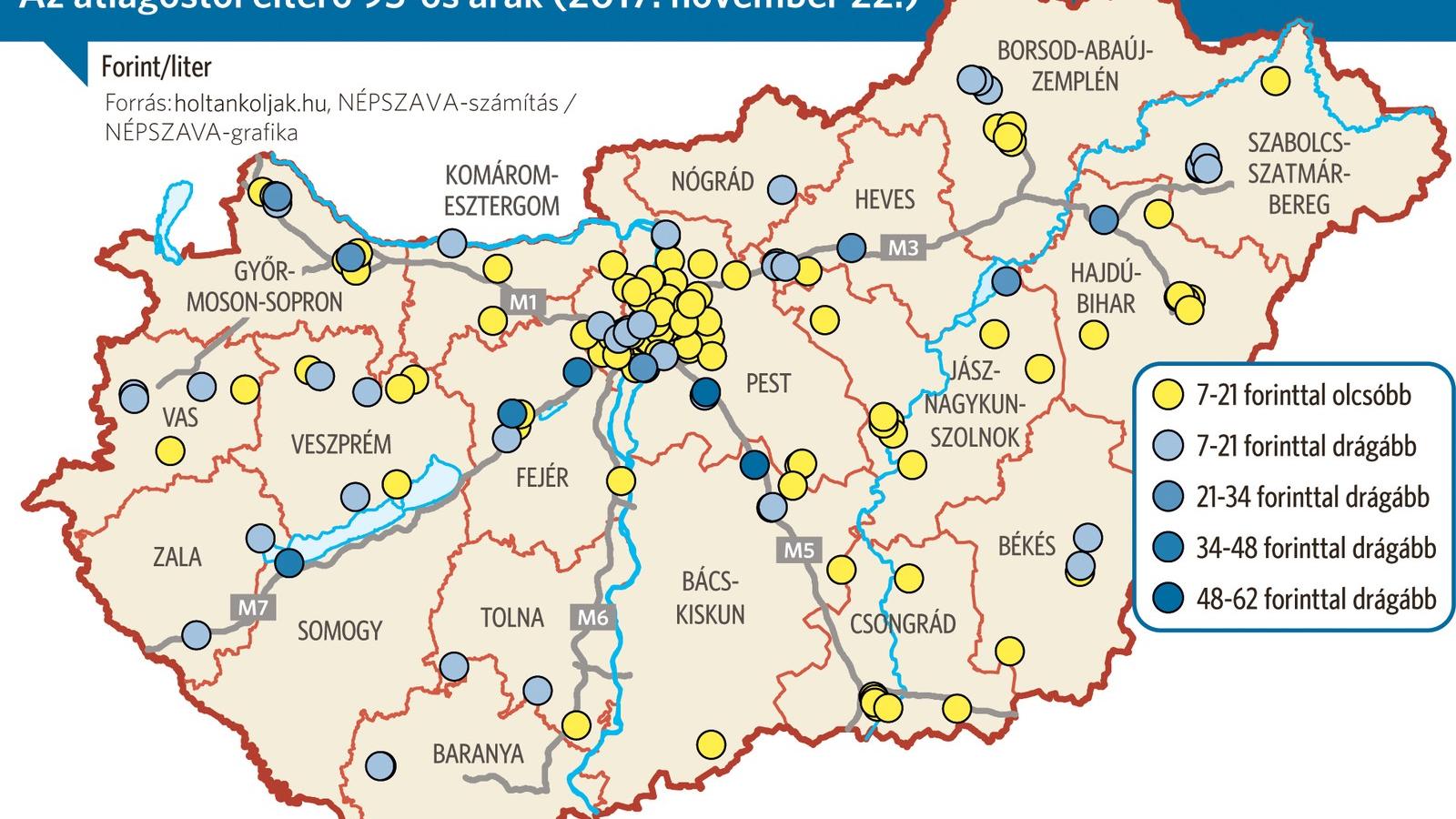 Nem tudni, Riz Gábor ezzel mire célzott. A benzinárbotrány lavináját Tállai András novemberi Facebook-bejegyzése indította el: a NAV-elnök, adóállamtitkár és fideszes egyéni képviselő azzal hencegett, hogy lakhelyén, Mezőkövesden eljárt a helyi Mol-kút árcsökkentése érdekében. Sikerét a holtankoljak.hu kimutatásai visszaigazolják. Ózdhoz hasonlóan ugyanakkor Matyóföld fővárosában is több ismert márka van jelen.