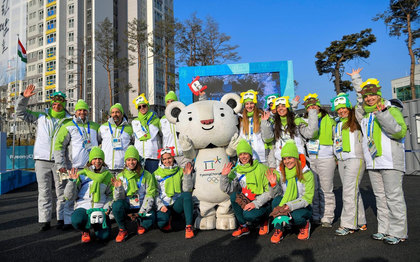 Köztük a magyarnak is, melyet Kónya Zsófia és Jászapáti Petra rövidpályás gyorskorcsolyázó vezetett fel egy-egy piros-fehér-zöld zászlót lobogtatva. Nem volt jelen a férfi rövidpályás gyorskorcsolyacsapat, de a sízők nagy része megjelent annak ellenére, hogy ők a phjongcshangi faluban laknak. A bevonulók egy-egy maszkot kaptak ajándékba a szervezőktől.