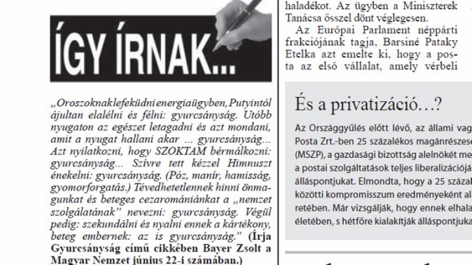 (Írja Gyurcsányság című cikkében Bayer Zsolt a Magyar Nemzet június 22-i számában)