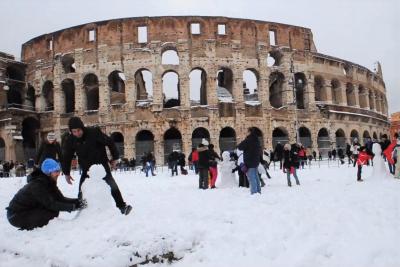 Sűrű havazásra ébredtek Róma lakói hétfőn: az éjszakától folyamatosan hulló hó teljesen megbénította a közlekedést - írja az MTI.