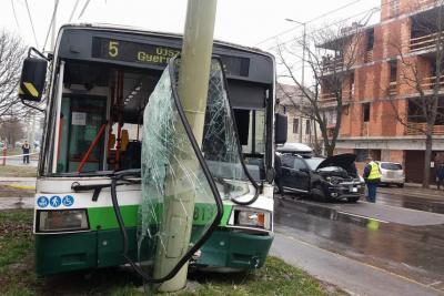 Ketten súlyosan, tízen könnyebben megsérültek, amikor egy troli összeütközött egy autóval és villanyoszlopnak csapódott Szegeden - közölte a rendőrség.