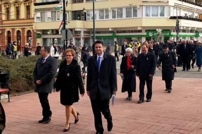 Néhány felirat: Veled vagyunk Viktor! Temerin köszönti a nemzeti oldalt! Magyarok nagyasszonya könyörögj érettünk! Voltak akik egy élet nagyságú Soros György-fugurával készültek. Soros száját Szabad vasárnap feliratú matricával ragasztották le. Kezében táblát tart: van egy tervem!