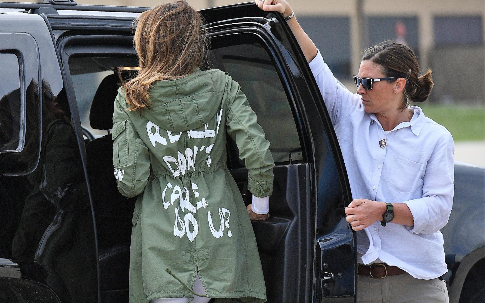 Donald Trump amerikai elnök feleségét a sajtó egy része méltatlankodva fogadta, hogy olyan dzsekit viselt, amelynek a hátán "Én igazán nem törődöm vele? És te?" felirat olvasható. Stephanie Grisham, a first lady szóvivője rögtön közleményben jelezte: a Zara divatház modellje "egyszerű dzseki, nincs rejtett üzenete". A sajtófőnök hozzátette: a látogatás a fontos, és reméli, hogy "a sajtó nem a ruhára összpontosítja figyelmét".