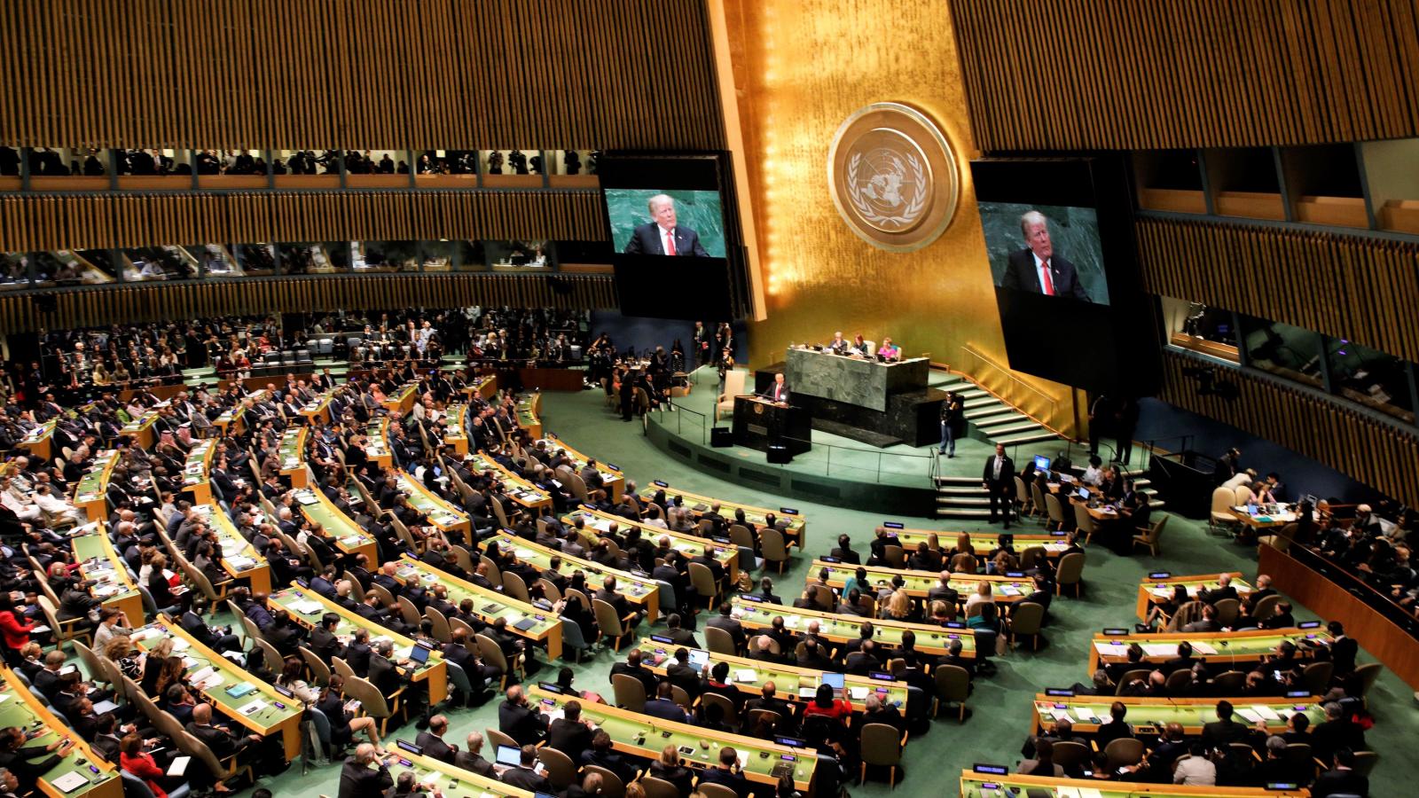 Az amerikai elnök a közgyűlési beszédében éles hangon ostorozta, korrupt diktatúrának nevezte a teheráni rezsimet, amely szerinte káoszt és pusztulást hoz szomszédaira. Közölte: Washington elő fogja segíteni egy regionális stratégiai szövetség létrehozását az öböl-menti országokból, Jordániából és Egyiptomból. Olyan bizonyítékkal azonban nem állt elő, ami indokul szolgálhatna az atomalku felmondására, és ami alátámasztaná azt a washingtoni állítást, hogy Teherán az atomalkut sem tartja be, csalárd módon megvezeti a nemzetközi közösséget.