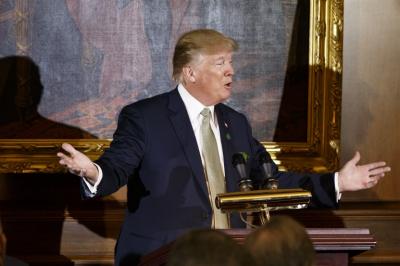 Emlékeztetett arra, hogy már a választási kampányában is az amerikaiak biztonságának megóvását ígérte, és feltette a kérdést: vajon mi az oka annak, hogy tehetős amerikaiak falat emeltetnek a házuk köré. Az elnök nem nevezett néven senkit, de egyértelműen Barack Obama demokrata párti volt elnökre utalt: pár nappal korábban ugyanis már felhozta, hogy az Obama-házaspár a washingtoni villája körül magas falat emeltet.