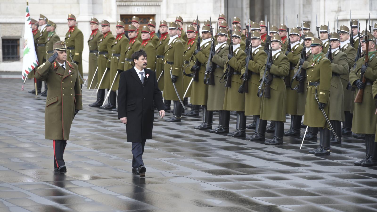 A zászlót Áder János köztársasági elnök és Kövér László házelnök jelenlétében a Himnusz hangjaira a honvédség díszegysége vonta fel. Az eseményen közreműködött a központi katonazenekar és a lovas díszegység.