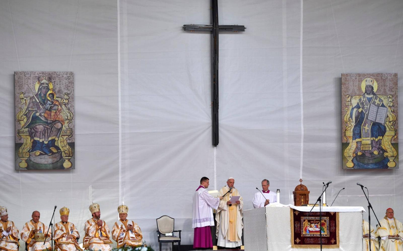 Közel százezres tömeg előtt beszélt a katolikus egyházfő az erdélyi Balázsfalván (Blaj), ahol a vasárnap tartott szentmisén boldoggá avatta a romániai görögkatolikus egyháznak a rendszerváltás előtt börtönökben elhunyt hét püspökét. Ferenc pápa szerint - amiként a rendszerváltás előtt az erdélyi görögkatolikus püspökök tették -, úgy ma is fel kell lépni a romboló ideológiák ellen. Kijelentette: ma is olyan ideológiák születnek, amelyek alattomos módon próbálnak érvényre jutni, és megpróbálják elszakítani az embereket a leggazdagabb kulturális és vallási örökségüktől.