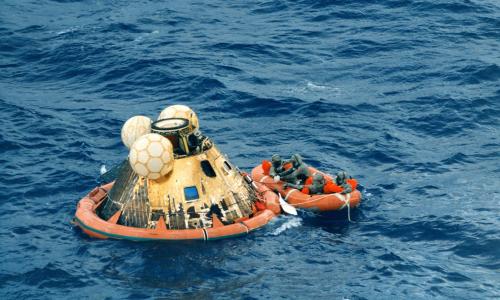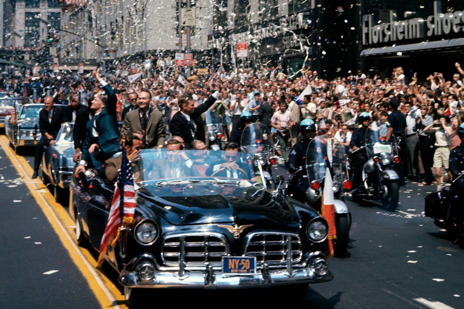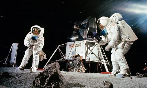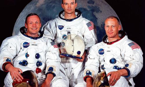 1969. július 16-án 14:32-kor (helyi idő szerint 9:32) emelkedett a magasba a Cape Canaveralen található Kennedy űrközpontból az Apollo-11 három fős legénysége, és 20-án Neil Armstrong és Edwin Aldrin sima leszállást teljesítettek a Nyugalom Tengerén, a Hold innenső oldalának egyik lávasíkságán.