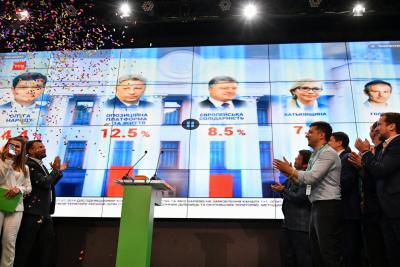 A Volodimir Zelenszkij ukrán elnök mögött álló Nép Szolgája (Szluha Narodu) párt toronymagasan nyerte a vasárnap megtartott előrehozott parlamenti választást Ukrajnában az esti urnazárás után közzétett exit poll-felmérések alapján. Az úgynevezett "nemzeti exit-poll" felmérés szerint