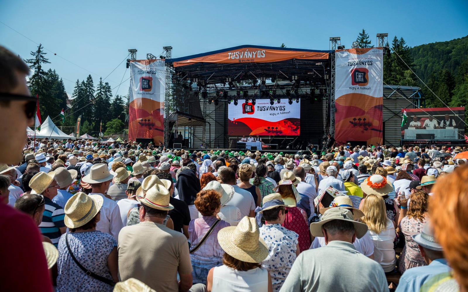 – Ez napközben egy Fidesz-tábor, este pedig ugyanolyan fesztivál, mint bármelyik más – ezt már egy Csíkszeredából származó, ma már az Orbán-kormány apparátusában dolgozó lány mondta péntek este, miközben a tömeg a Kiscsillagra tombolt. Ha megnézzük, hogy este hányan buliztak olyan egy kormánypárti újságíró által „liberálisnak” nevezett előadókra, mint a Kiscsillag, a Quimby, vagy éppen az Anna And The Barbies, és hányan látogatták napközben a programokat, vagy akár azt, hogy hányan ültek ki a tűző napra meghallgatni a nagyszínpadon Orbán Viktort, akkor amellett, hogy igazat adhatunk neki, azt is megállapíthatjuk, hogy a táborozók többsége inkább csak a buli kedvéért jött. A programról már korábban írtunk, megállapítva, hogy szinte teljesen eltűnt a vita, szinte teljesen eltűntek az ellenzéki politikusok, a kormánykritikus megszólalók, ahogy egy régi fesztiválózó megfogalmazta (láthatóan már túl néhány sörön, legyen az csíki vagy Ursus): „előbb a román politikusok tűntek el Tusnádról, majd a magyarországi ellenzékiek, mostanra a Fidesz magának beszél a fesztiválon”. Ha azt nézzük, hogy „Tusványosi köménymag” címmel például három pesti srácokos és egy 888.hu-s újságíróval lehetett szombaton pódiumbeszélgetést hallgatni, a PestiSrácok főszerkesztőjének moderálásában, akkor igaznak tűnik a látlelet. Ez persze láthatóan senkit nem zavart, az egyik legnépszerűbb tusványosi divatcikk például az Orbán Viktor iránti feltétlen rajongást világgá kürtölő, a miniszterelnök képével díszített „Defender of Europe” (Európa védelmezője), vagy a Trump-szlogent parafrazáló „Orbán Makes Europe Great Again” (Orbán Újra Naggyá Teszi Európát) póló volt. A maga részéről Orbán Viktor legfőbb vágya (mint ezt ő maga mondta el szombaton), hogy ez még legalább tizenöt évig így is maradjon – nem csak Tusnádon.