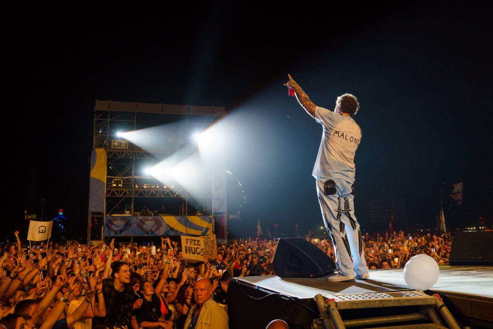 A Post Malone-ként elhíresült Austin Richard Post az R&B, house és elektropop elemeiből táplálkozó brit együttes, a Years&Years után állt az Ed Sheeran hatvan ezres rekordjával azért nem vetekedő, de így is igen szemrevaló méreteket öltő több tízezres közönség elé. Megjelenésében és zenéjében is tökéletes ellentétét képezve a londoni bandának, az egyedül színpadra lépő fellépők sorát gazdagítva.