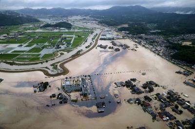 A meteorológusok az öt fokozatú skálán a legmagasabb szintű riasztást adták ki a Kjúsú nyugati részén lakók számára, akik évtizedek óta nem láttak ilyen heves esőzéseket.