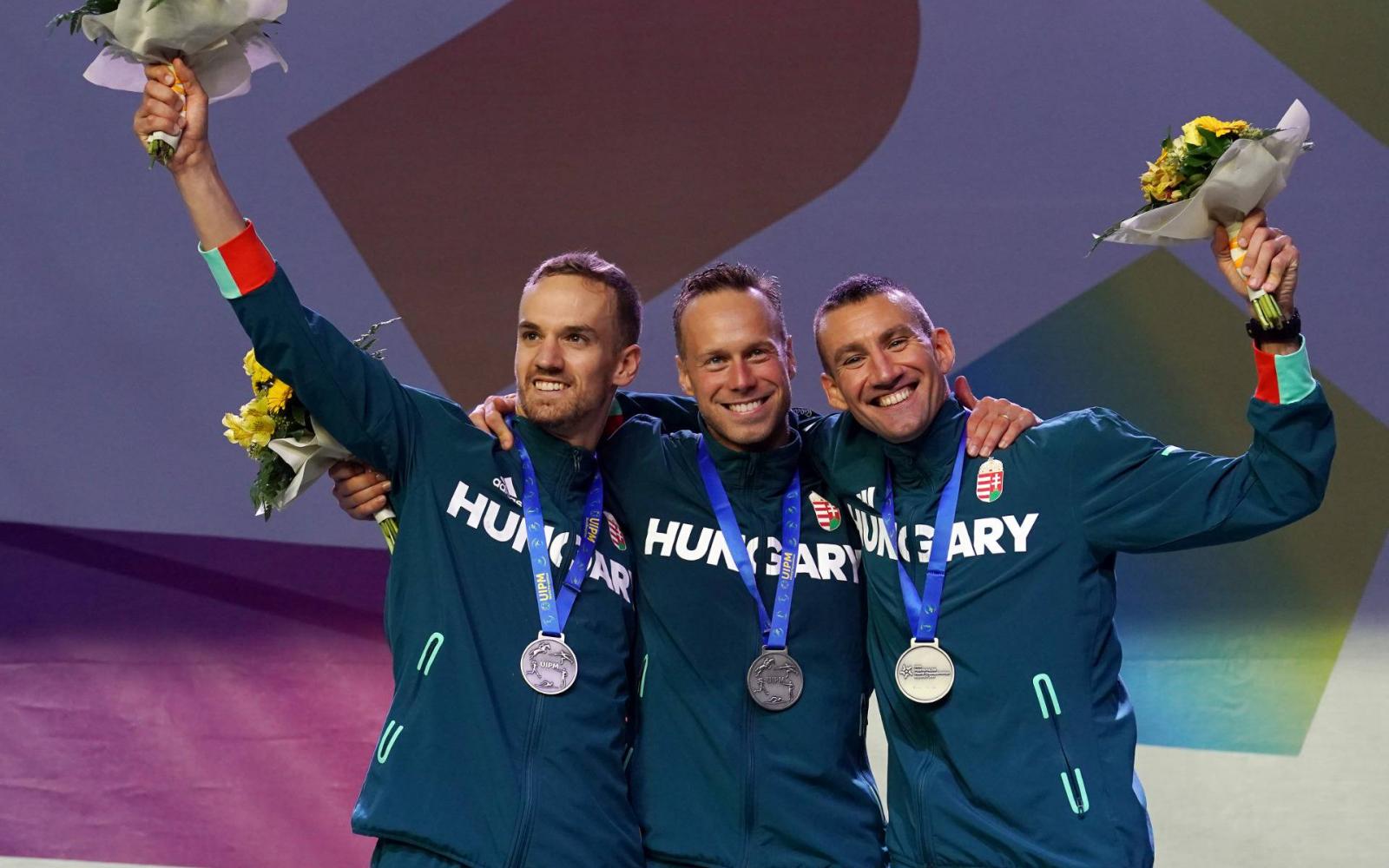 Ezüstérmet nyert a magyar férficsapat – Kasza Róbert, Marosi Ádám, Demeter Bence összeállításban – szombaton a budapesti olimpiai kvalifikációs öttusa-világbajnokság hagyományos versenyében. A magyarok ezzel a második érmüket nyerték a hazai vb-n azután, hogy hétfőn a Barta Luca, Réti Kamilla páros szintén második lett női váltóban.