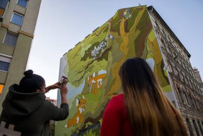 Három éve dolgozik a Színes Város Csoport azon, hogy a felújított VIII. kerületi tűzfalakra rajzfilmek karaktereit fesse.