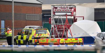A 38 felnőtt és egy fiatal teste egy Bulgáriából származó kamion rakterében volt, a 25 éves észak-ír sofőrt gyilkosság gyanújával tartóztatták le.