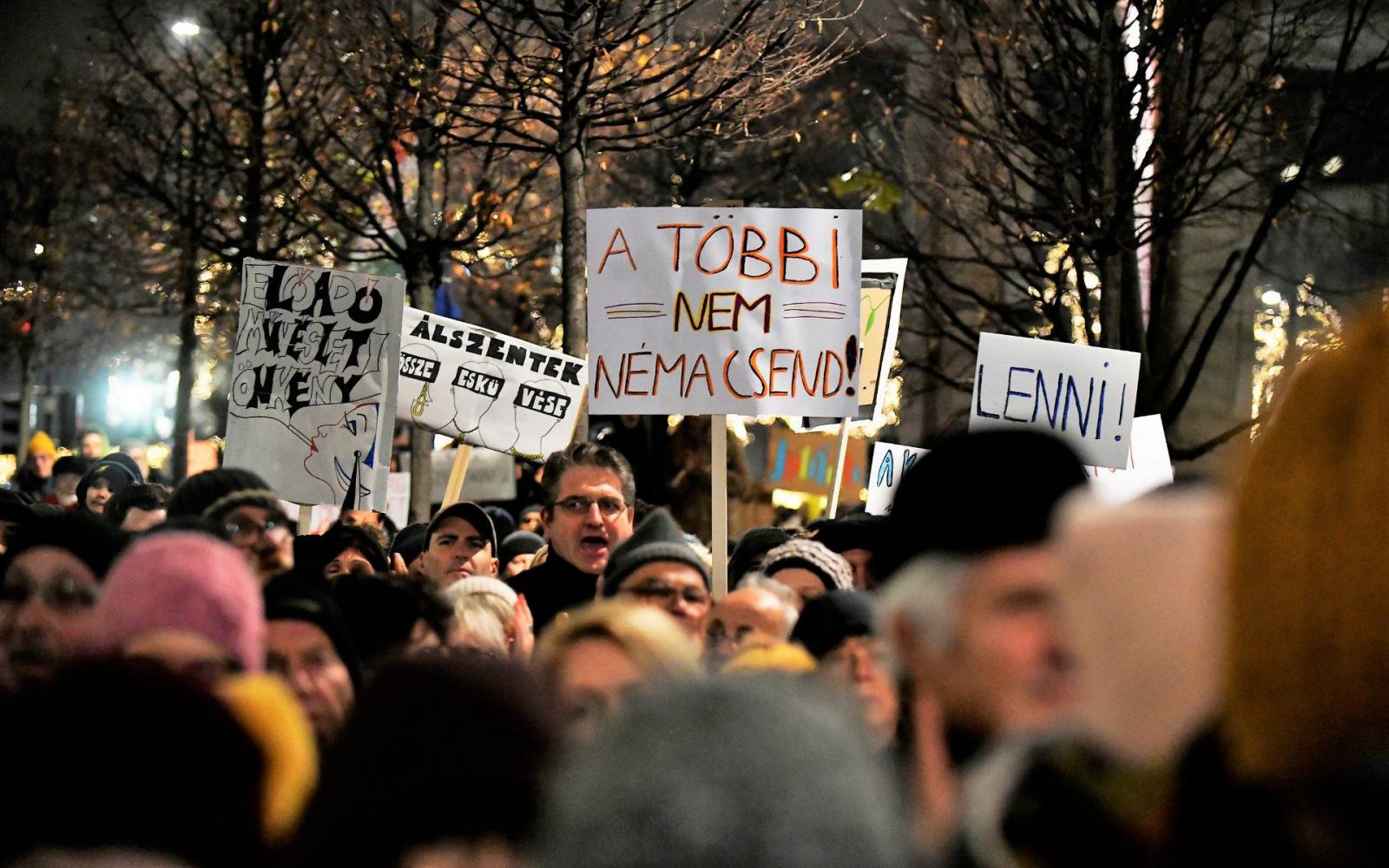 A Vígszínház igazgatója, Eszenyi Enikő nem vett részt a kulturális törvény módosítása miatt szervezett múlt hétfői demonstráción, mert – indokolta távolmaradását az ATV-nek – szerinte „mindent szakmai úton kell elintézni, itt pedig a diskurzus politikai térbe került”. Az Index cikke szerint vasárnap este a teátrum A diktátor című előadásának végén az első sorban ülő nézők egy transzparenset tartottak fel, amelyen az állt: „Távol Maradni IS Politika, Enikő!”.