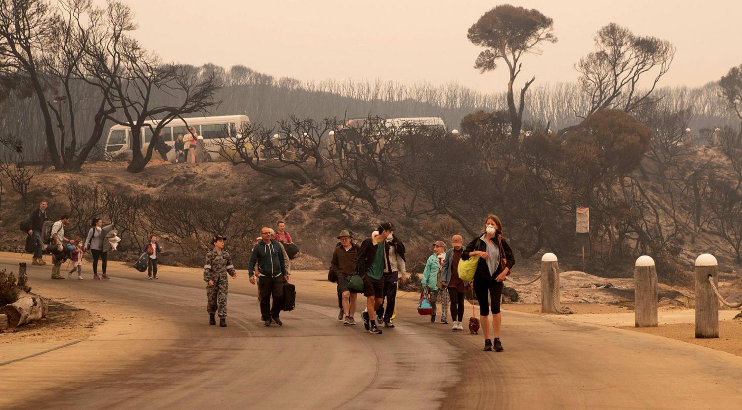 A hatóságok szükségállapotot hirdettek a kontinensnyi ország délkeleti, legsűrűbben lakott részében, majd megkezdte az ausztrál haditengerészet egy, a bozóttüzek által bekerített dél-ausztráliai tengerparti üdülőhely, Mallacoota lakosainak kimenekítését pénteken. A szeptemberben kezdődött bozóttüzek miatt legalább 20 ember halt meg, többtucatnyian eltűntek, és több mint 1300 ház lett a lángok martaléka, Belgium kétszeresének megfelelő nagyságú terület égett le.
