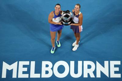 Háromszoros Grand Slam-bajnok lett a Babos Tímea, Kristina Mladenovic páros miután az ausztrál nyílt teniszbajnokság pénteki döntőjében 6:2, 6:1-re legyőzte a Hszie Szu-vej, Barbora Strycova tajvani, cseh duót.