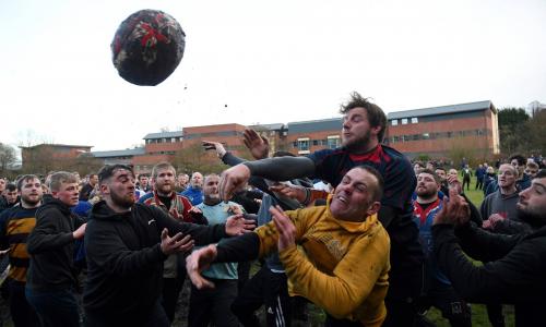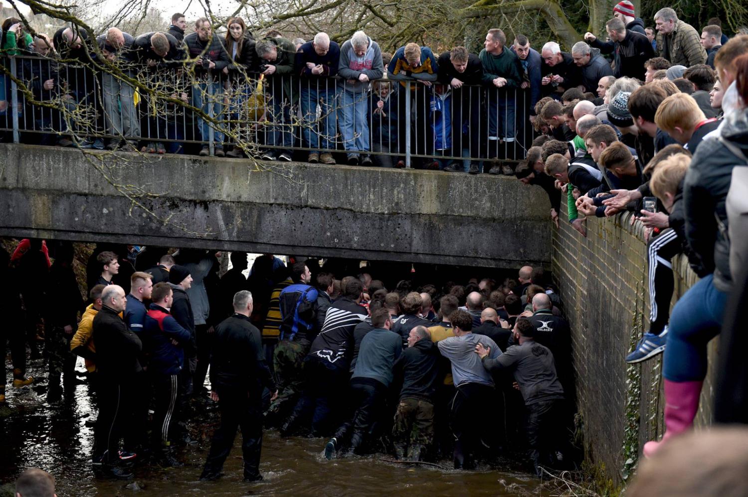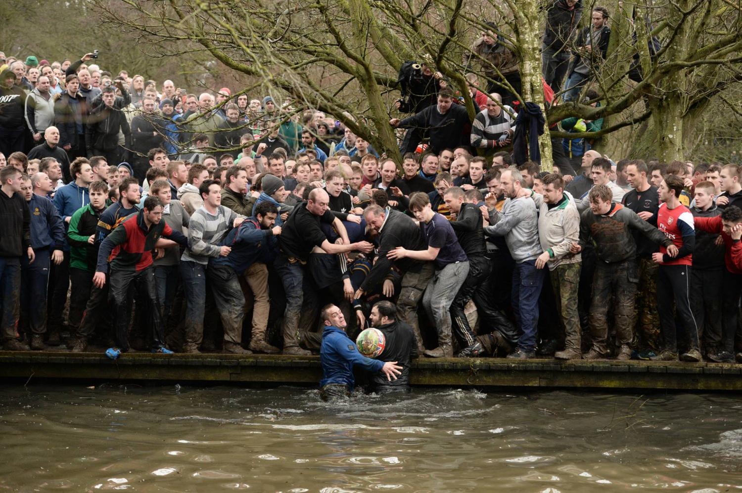 900 éve játsszák az angliai Ashbourne-ben a Royal Shrovetide Football Match nevű tornát, ami tulajdonképen egy fociba oltott pofozkodás. Az esemény különlegessége, hogy a települést átszelő folyó két partján élők alkotják a 200-200 fős csapatokat és a pálya tulajdonképpen az egész város. A meccs idejére bedeszkázzák az ablakokat és ivócimborákból ellenséggé válnak a békés város lakosai.