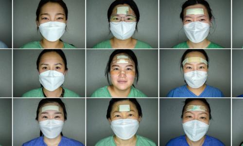 Az egész világon küzdenek a kínai Vuhan tartományból kiindult koronavírus-fertőzéssel. Különösen nagy erőfeszítéseket követel a vírusgócokban harcoló egészségügyi dolgozóktól, Kínában, Iránban, Olaszországban és Dél-Koreában, ahol a fertőzések száma miatt összeomlás szélén áll a betegellátás. Ed Jones, ezek előtt a hősök előtt tiszteleg azzal, hogy bemutatja őket. A dél-koreai Tegu város egyik karanténkórházának ápolói sebtapasszal ragasztják le az arcukat ott, ahol a védőmaszk kidörzsölné.