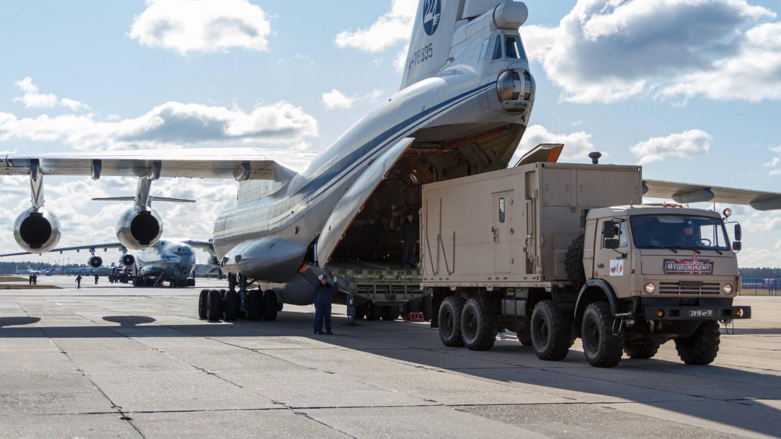 Vlagyimir Putyin orosz államfő és Giuseppe Conte olasz miniszterelnök egyeztetése után Moszkva 600 szellőztető berendezést, valamint fertőtlenítő és vegyvédelmi eszközöket küldött Olaszországba, száz víruskutató és epidemiológus szakember társaságában. A repülőgéppel Rómába érkezett szállítmányt orosz katonai teherautón szállították Bergamóba, a járvány olaszországi epicentrumába. Putyin azt üzente az olaszoknak a szállítmány kapcsán, hogy