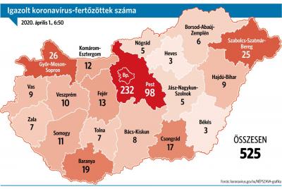 Szerda reggel 525 volt a beazonosított fertőzöttek száma.