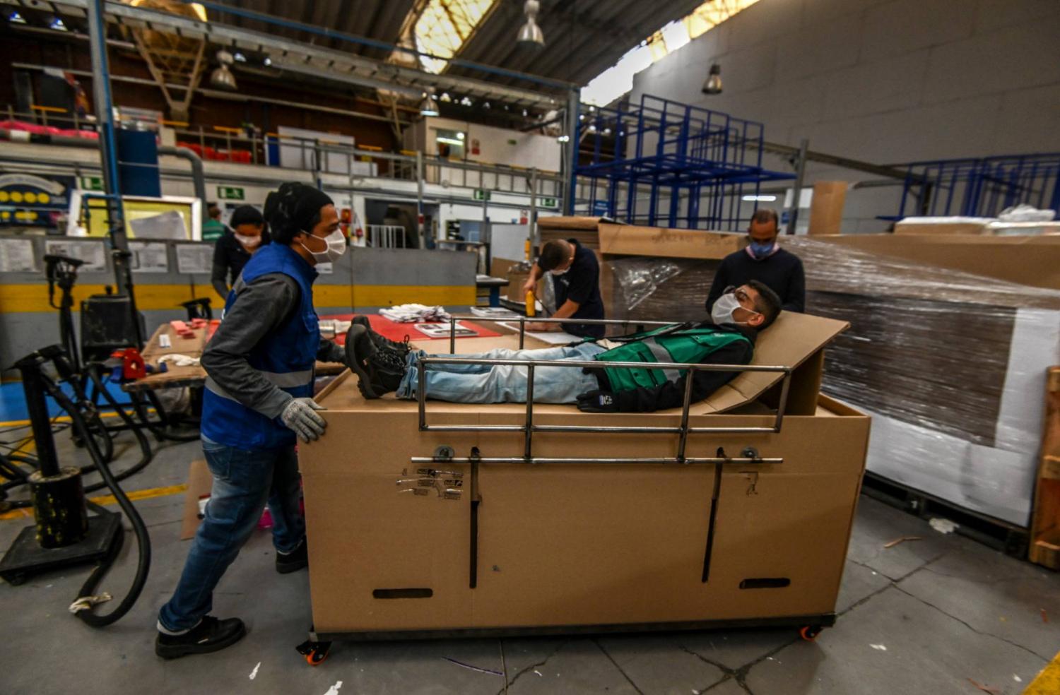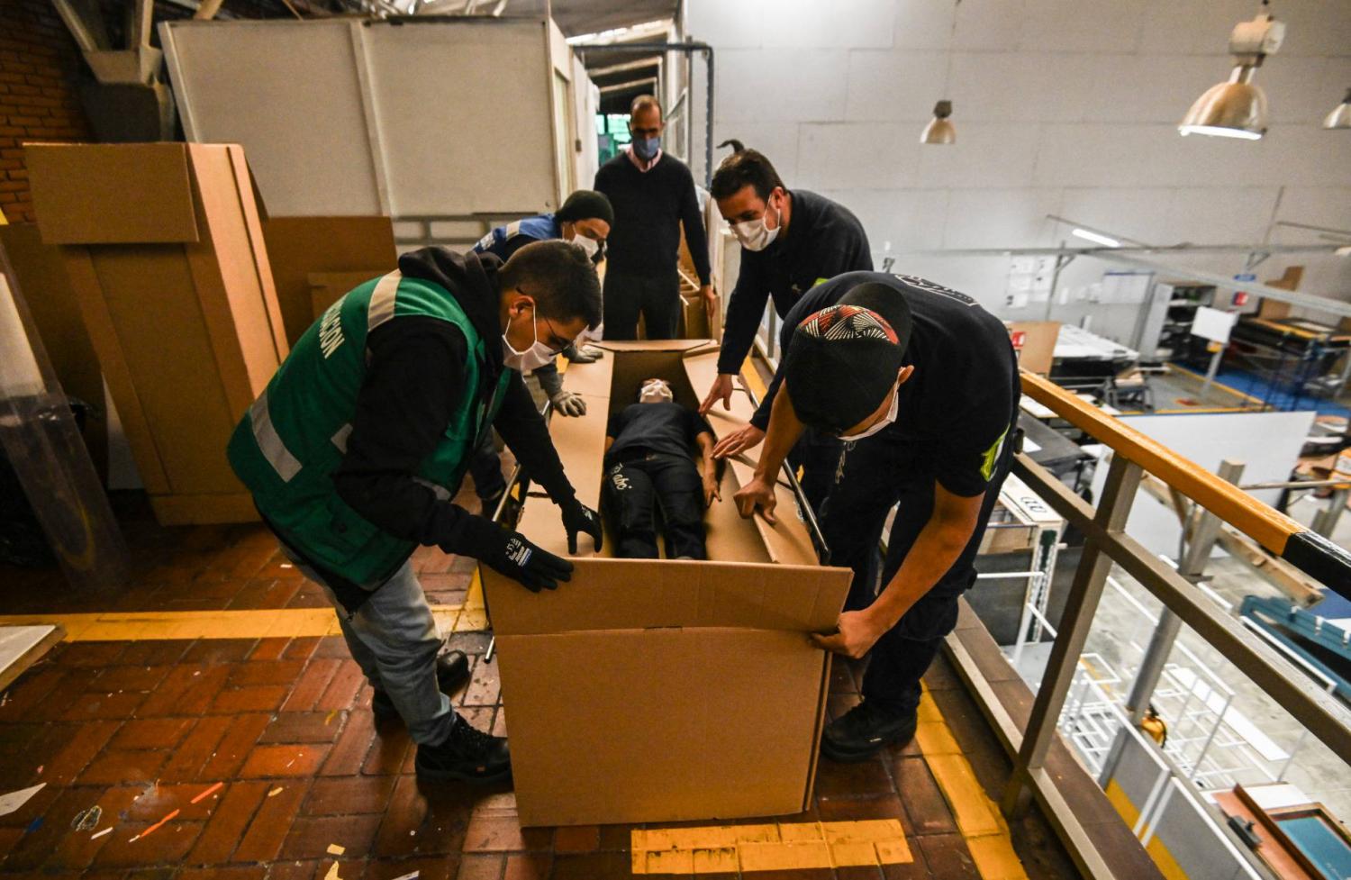 Bogotában rendhagyó megoldást találtak a járvány miatt kialakult kórházi ágy- és koporsóhiányra. Egy reklámügynökség és egy magánkórház közös fejlesztése ez a kartonpapírból készülő kórházi ágy, ami vasrudakkal megerősítve 150 kilóig terhelhető, hihetetlenül olcsó és egy mozdulattal koporsóvá alakítható, amit a krematóriumok fogadni tudnak. Az ABC Displays azért kezdett a fejlesztésbe, mert látták a szomszédos Ecuadorból érkező híreket, hogy rengetegen kénytelenek együtt élni a halottaikkal, ott ugyanis nenics elég koporsó.