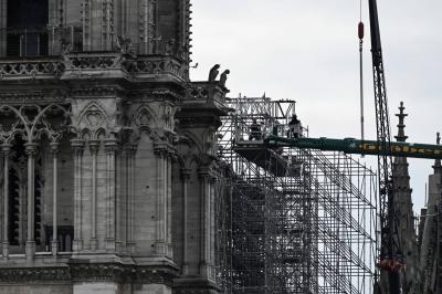 2019 áprilisában ütött ki tűz a felújítás alatt álló párizsi Notre Dame székesegyház tetőszerkezetén. A templom huszártornya a tűzvészben megsemmisült, a körülötte lévő állványzat nem dőlt le, de erősen megrongálódott. A 40 ezer darabból álló 200 tonnás állványzatot, amelynek a fele több mint 40 méteres magasságban található, először megerősítették, majd három szinten fémrudakkal fogták körbe, annak érdekében, hogy ne omoljon össze. Június 8-tól két csapat felváltva próbálja megközelíteni a megégett részeket, és rezgőfűrésszel kivágni az egymásra olvadt csöveket, amelyeket azután egy 80 méter magas daruval szállítanak el a helyszínről. Az épületstabilizálási munkálatok tavaly júliusban ólommérgezés miatt, idén pedig a járvány miatt álltak.