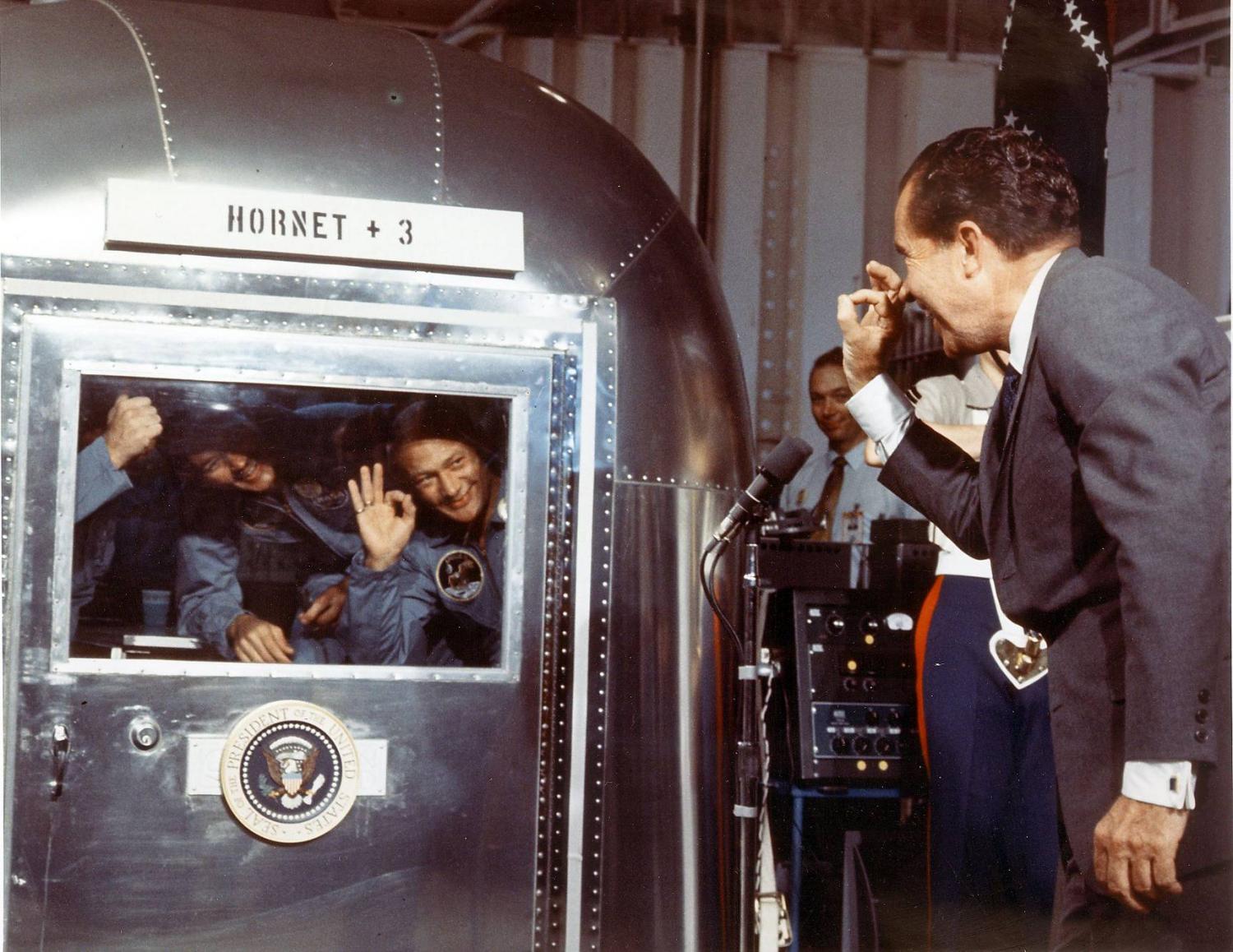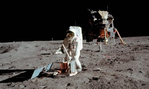 1969. július 20-án Neil Armstrong és Buzz Aldrin sima leszállást teljesítettek a Nyugalom Tengerén, a Hold innenső oldalának egyik lávasíkságán, ezzel az Apollo-11 elérte a célját és ember lépett egy idegen égitest felszínére. Az expedíció harmadik tagja Michael Collins volt, aki Hold körüli pályán keringett a parancsnoki űrhajóval, majd társait 21 óra 40 percnyi holdfelszínen tartózkodást követően fogadta.