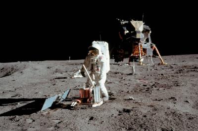1969. július 20-án Neil Armstrong és Buzz Aldrin sima leszállást teljesítettek a Nyugalom Tengerén, a Hold innenső oldalának egyik lávasíkságán, ezzel az Apollo-11 elérte a célját és ember lépett egy idegen égitest felszínére. Az expedíció harmadik tagja Michael Collins volt, aki Hold körüli pályán keringett a parancsnoki űrhajóval, majd társait 21 óra 40 percnyi holdfelszínen tartózkodást követően fogadta.