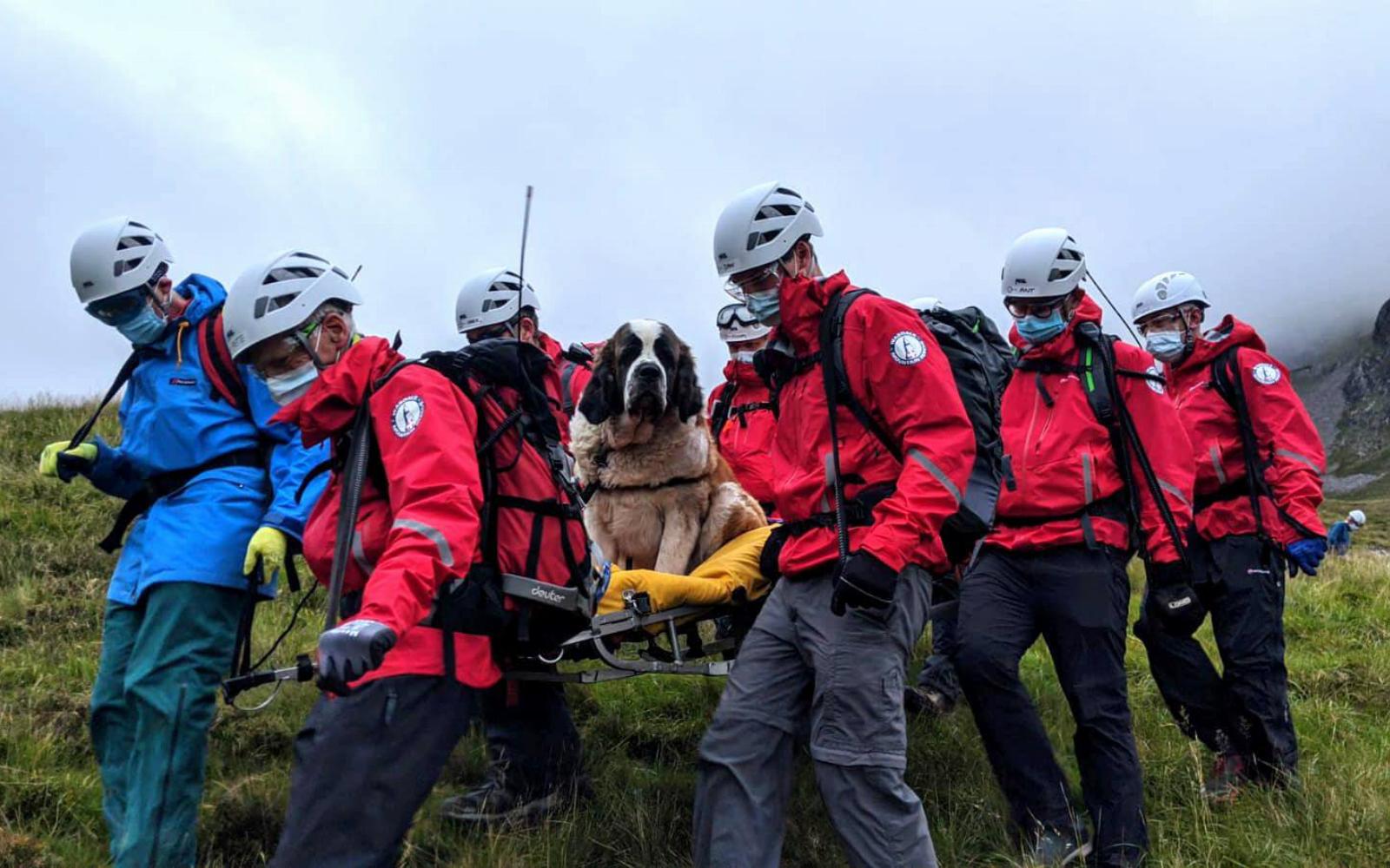 Szokatlan szerepcsere történt a múlt hét végén Anglia legmagasabb hegyén: egy 16 tagú mentőcsapatnak kellett levinnie a magasból egy erőtlen bernáthegyi kutyát. Daisy a gazdáival az északnyugat-angliai Cumbria megyében lévő Scafell Pike hegy csúcsáról ereszkedett le múlt pénteken, amikor hirtelen összerogyott. Az 55 kilogrammos állat a hátsó lábait fájlalta és nem volt hajlandó mozdulni.