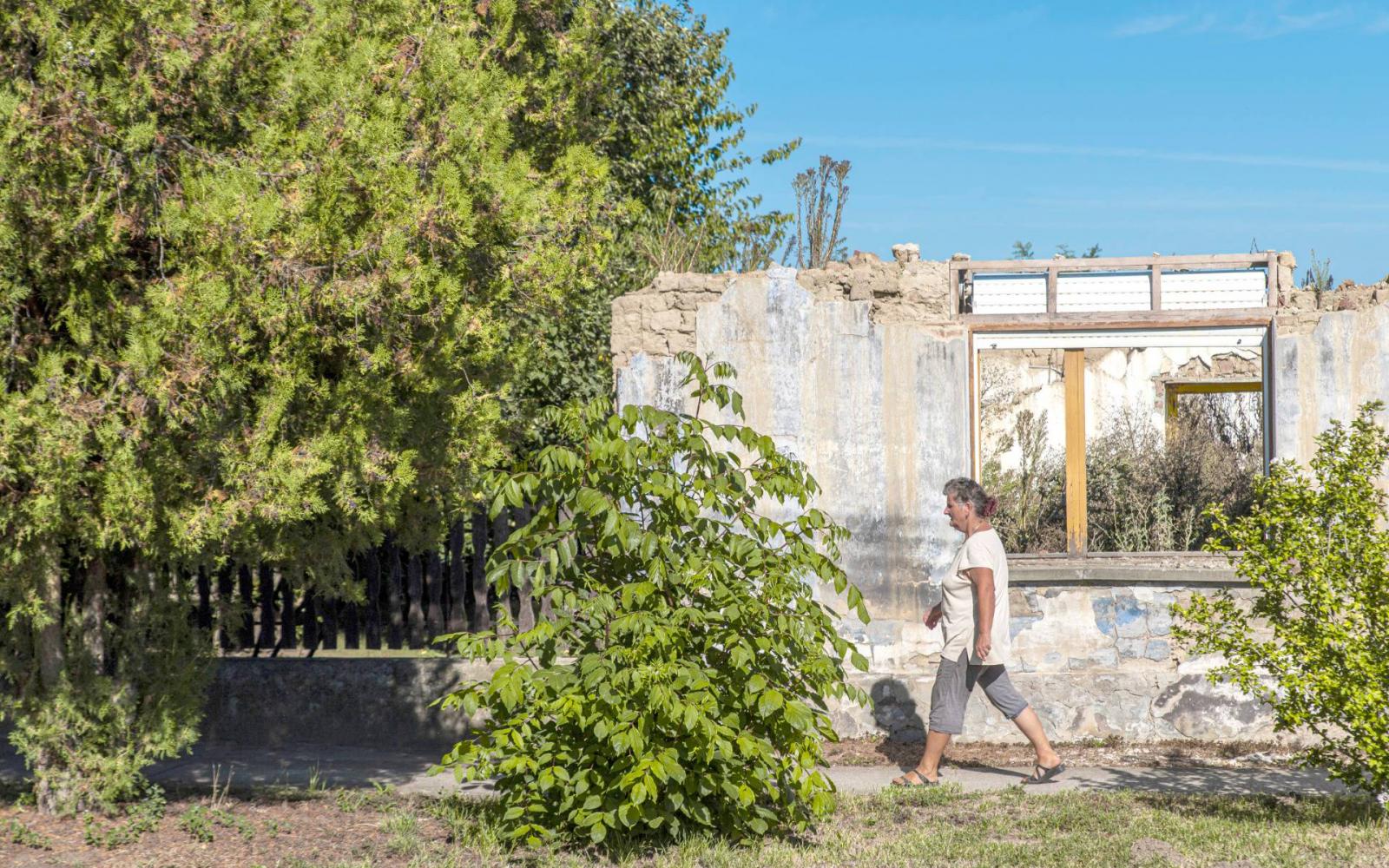 Megállunk egy újabb romnál. Dezső lakott itt az anyjával, idézi a történeteket a polgármester. Dezső felnevelt egy gyereket, aztán elvált és visszaköltözött az anyjához, és ők ketten 5-10 éve meghaltak. A gyerek elkerült valahová. A tetőt előbb leszedte, a ház meg összedőlt. A következő ház is csak egy gazokkal benőtt rom, az is hasonló sorsot élt meg.