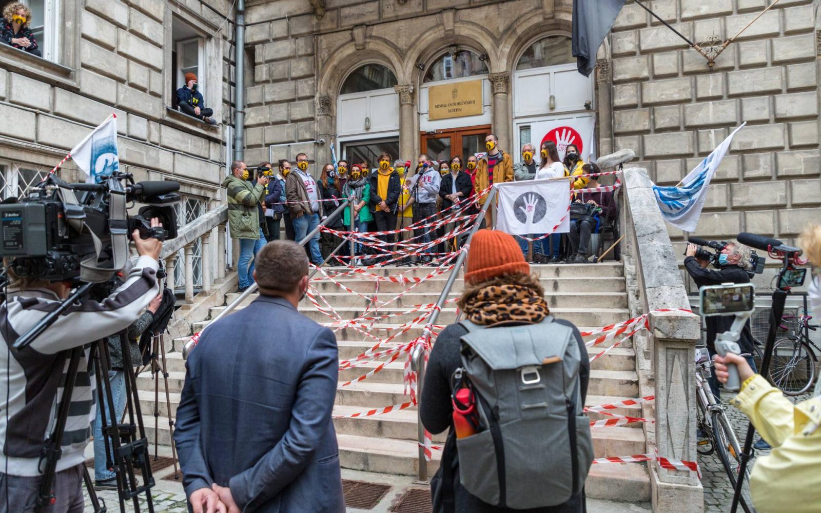 Ötven napja sztrájkolnak a Színház-és Filmművészeti Egyetem (SZFE) oktatói és hallgatói, amelynek sorsáról csütörtökön délelőtt tájékoztatták a nyilvánosságot. A Zoom-on megtartott sajtótájékoztatón kiderült, hogy az egyetem ajtói kulcsra vannak zárva, a parkolót is lezárták, ugyanakkor