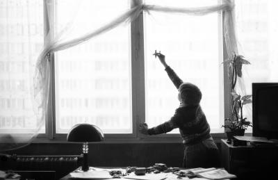 Az utolsó métereken lekapcsolom a tompított fényszórót, a szerencsétlenül kialakított behajtóról egyenesen a nappaliba világítana. Harsány módja az érkezésnek. Óvatosan gurulok előre a sötétben, amíg a kapu előtti hósávot el nem takarja az autó orra. A verandán dohányzik. Nem hallott meg. Nyitva a bejárati ajtó, biztos megy a tévé. Mindig megy a tévé. Csukott szemmel beleszív a cigarettába, mellkasa megemelkedik, hasa kissé behúzódik. Későbbre vár, a szokásosnál gyengébb volt a forgalom, a határon is csak intettek, mehetek. Ahogy leállítom a motort, az utastérben fölkapcsolódik a lámpa, gyorsan lenyomom. Nem vette észre. Illetlenség leskelődni, de még soha nem láttam így. Az udvari lámpa piszkossárga fénykörének közepén áll, fejét az ajtó felé fordítja. Mennyire más az ember, amikor egyedül van. Ugyanúgy néz ki, mint egy éve, a részletek mégis mások. A kinyúlt pulóver vállán ismeretlen szakadás, a farmer mintha még jobban feszülne a hasán, a cipőfűzőjével játszó kölyökmacska pedig egész biztosan máshogy foltos, mint a tavalyi. Fekete félcipője orrán egy lyukon át fehér zokni világít, a lábujjaim összerándulnak a bélelt bakancsban. Füst kavarog a veranda lámpája felé, a macska prüszköl az orrára hullott hamutól.