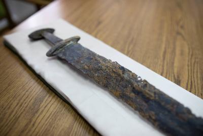 A Karoling kori harci eszközt, amely egy frank lovas katonáé lehetett egy munkagép fordította ki a sóderből.