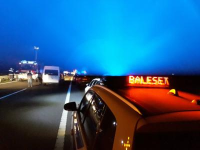 Az elsődleges adatok alapján több kamion akadt el a havazás miatt csúszóssá vált úttesten 2021. február 9-én 17 óra 30 perc körül. Az úttest síkosság mentesítése megkezdődött, a forgalom rendőri forgalomirányítás mellett haladhat.