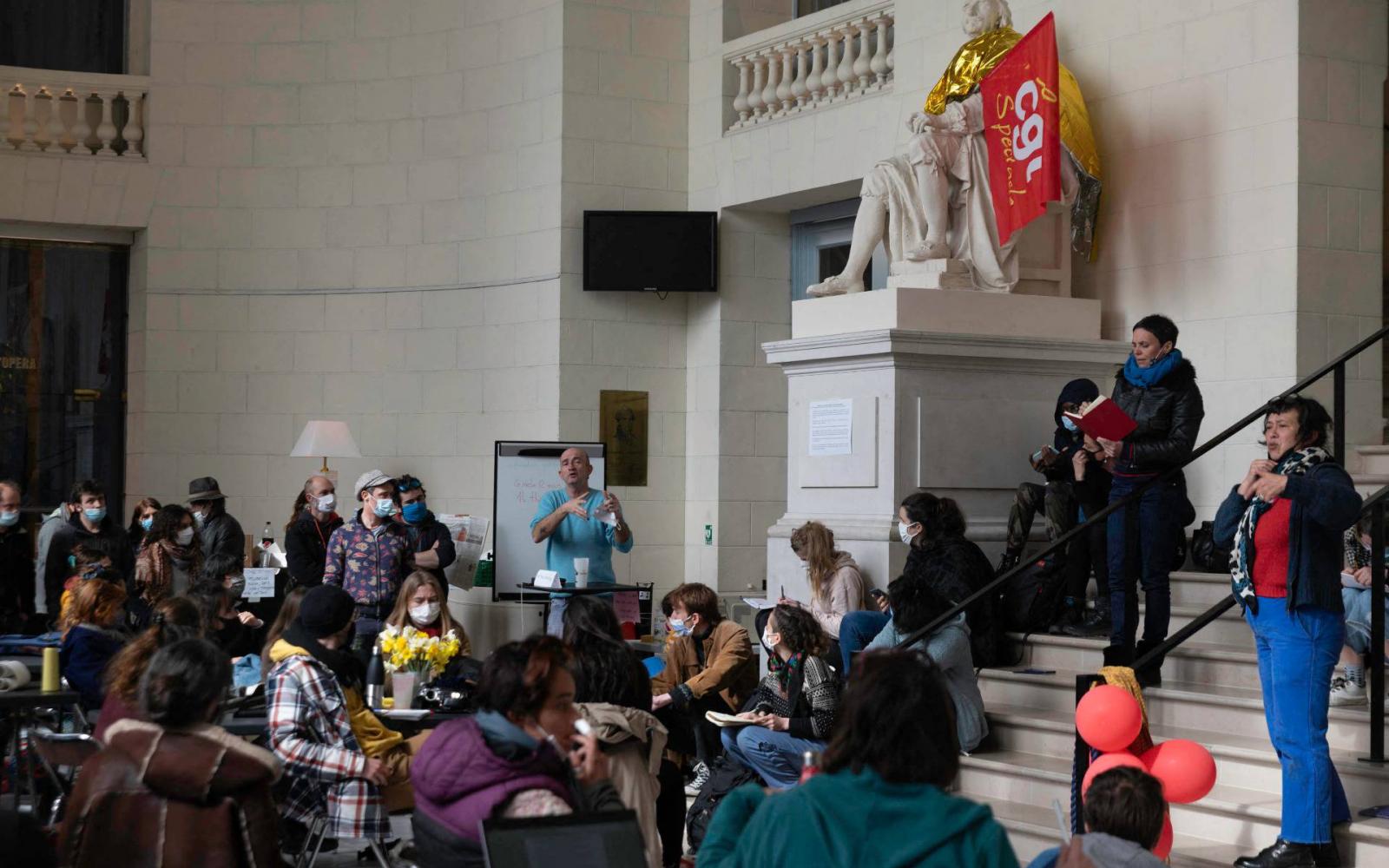 Mind több színházat foglalnak el francia nyelvterületen, hogy így hívják fel mindenki figyelmét arra, mennyire drámai helyzetbe kerültek a kulturális szférában dolgozók. Egyúttal a színházak megnyitását követelik függetlenül attól, hogy egyelőre mindkét országban messze még a koronavírus-járvány vége. Elsőként a párizsi Odéont foglalták el március elején. Itt nem csak a nyitás volt a cél. A kulturális minisztérium ugyanis augusztus 31-ig kívánja fenntartani az ágazatban dolgozók bértámogatását, ők azt követelik, hogy ennek időtartamát jövő év augusztusáig hosszabbítsák meg, mert addig aligha érheti el a színházak látogatottsága a járvány előtti szintet. Roselyne Bachelot kulturális miniszter március 7-én személyesen is felkereste a fővárosi színházfoglalókat, utóbbiak azonban úgy vélték, csak üres szavak hangzottak el a tárcavezető részéről. Közölték, addig folytatják akciójukat, amíg konkrét válaszokat nem kapnak.