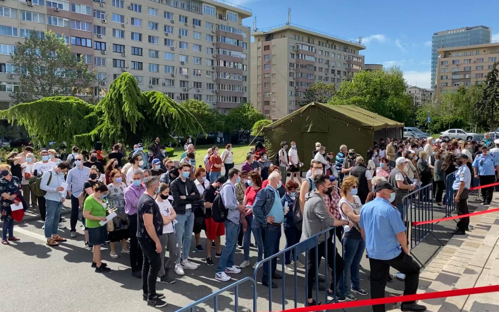 (Képünkön egy oltóközponttá alakított bukaresti rendezvénycsarnok előtti sorban állás)