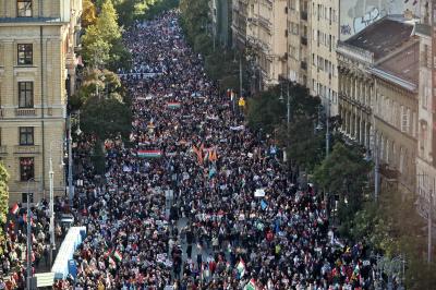 Márki-Zay Péter hatalmas tapsot kért a szabadságszerető magyar fiataloknak. Elmondta: teljes nemzeti összefogás volt 1956. október 23-án. Kiemelte: a mai nap üzenete a teljes összefogás. Meglepő módon beszéde közben Orbán szlogenjét, a "Hajrá, Magyarország, hajrá magyarok" felkiáltást használta. Mint mondta, egy olyan országban "akarunk élni", ahol sajtószabadság van, ahol szabad tankönyvszabadság van, ahol digitális oktatás van, ahol az állam nem uralkodik.