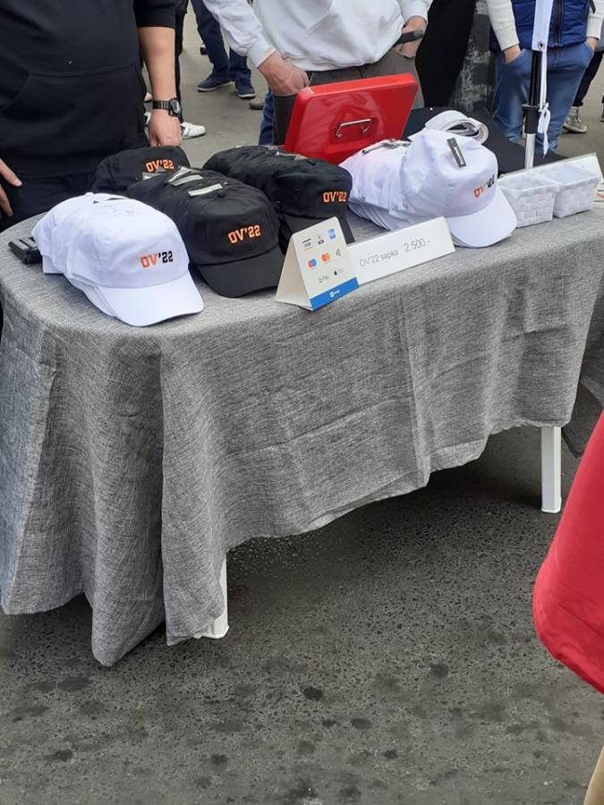 Hogy senki ne értse félre, a Békemeneten árulnak az Orbán Viktor 2022-es parlamenti választási sikerét hirdető baseballsapkát is.