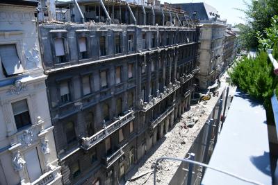 Házomlás a Jókai utcában: Egy 15 lakást magába foglaló luxusprojekt kivitelezése zajlik az épületben