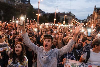 Péntek délután több ezer ember ment el arra a demonstrációra, amelyet a Diákok a Tanárokért mozgalom szervezett a béremelésben hiába reménykedő magyarországi pedagógusokért. A Szent István Bazilikától vonultak a Fővám térig, ahol a címben szereplő felhívást az egy kőbányai tanárnő tette. Ő arról beszélt, hogy a kerettanterv megtaníthatatlan, sok tantárgy esetében még év végéig sem érnek a végére, de volt a tüntetésen kockás inges zászló és mobiltelefonos fényáradat is. Galéria!