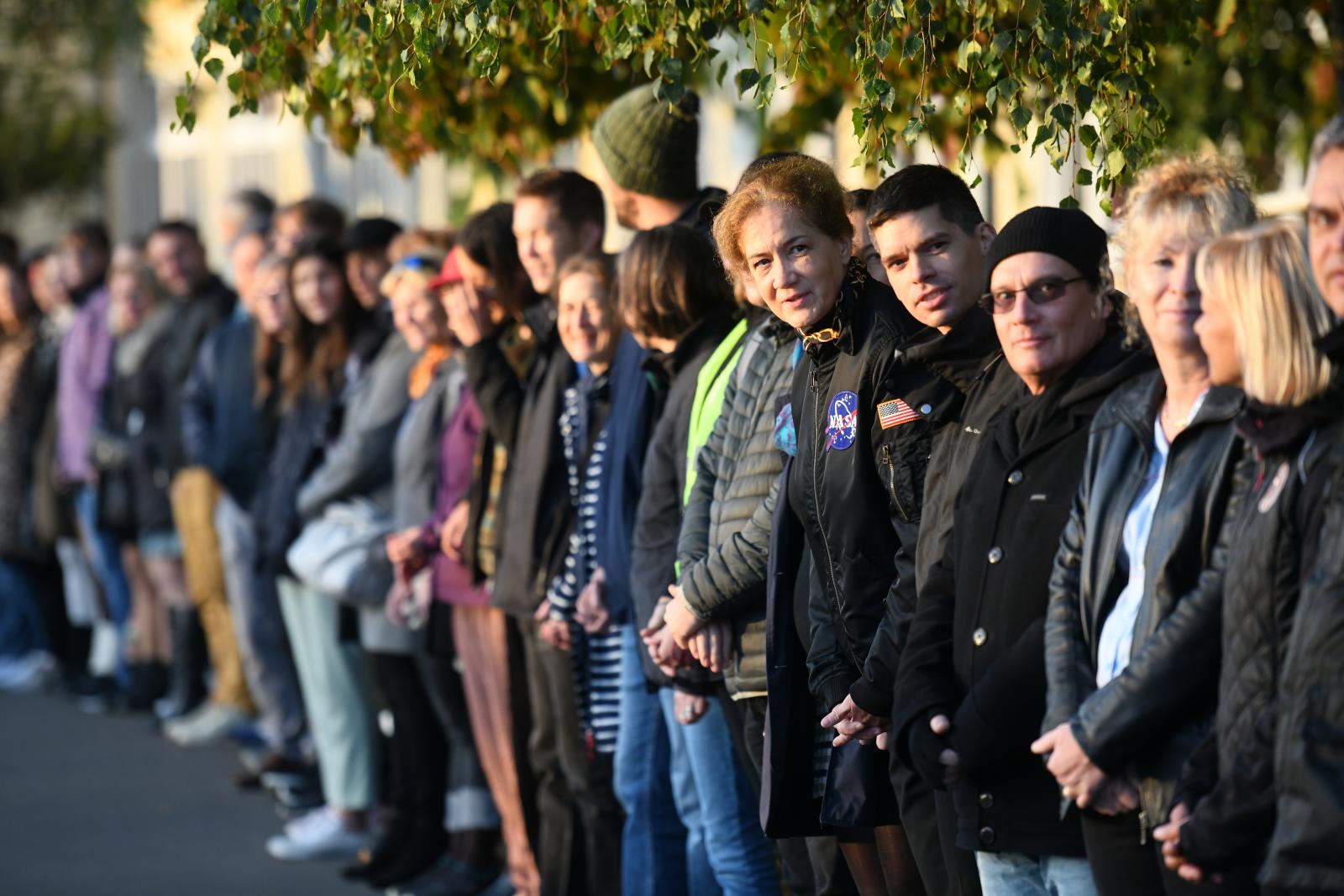 Előbbi előtt fél 8-kor, utóbbi előtt már 7-kor elkezdett alakulni az élőlánc. Képeink a Deák Ferenc Gimnázium előtt készültek.