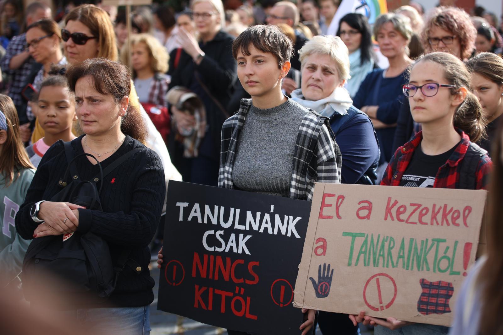 Élőláncot és több demonstrációt is tartottak Szegeden szerda délelőtt: nettó 207 ezer forintért tanítók üzentek Kövér László házelnöknek, diákok követeltek rendes bért tanáraiknak meg tisztességes tankönyveket maguknak és szülők álltak ki a normális oktatási rendszerért.