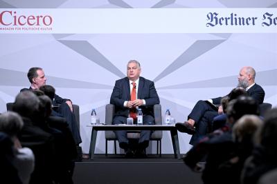 A közlemény szerint „színes tömeg” gyűlt össze a Berlin belvárosában található Gendarmenmarkton hétfő délután öt óra körül, ahol a miniszterelnök beszédet mondott egy hotelban a Német-Magyar Ipari és Kereskedelmi Kamara rendezvényén. Többnyelvű transzparensek, ukrán zászlók és az elmúlt 12 év „magyar politikai fejleményeit taglaló zenéi” várták a kormányfőt, illetve a rendezvényre érkező politikusokat és üzletembereket.