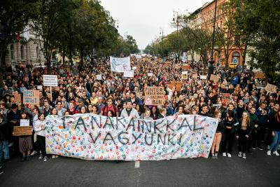 - Ne fenyegessék a tanárainkat! – zúgott fel a kaposvári főtér, majd zárásként felhangzott a Grund-dal: Miért félnénk, miért élnénk, ha nem egy álomért…