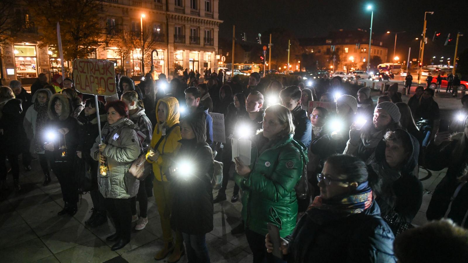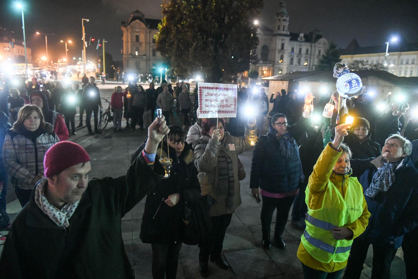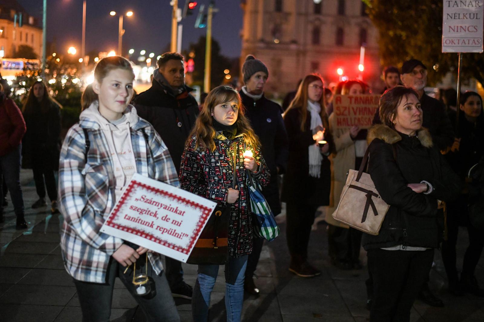 Kezdésre körülbelül 60-70 ember – nagyrészt diák és tanár – jelent meg azon a tüntetésen, amelyet a Pedagógusok Szakszervezete hirdetett meg Gyújts egy lámpást az oktatásért címmel Győrben a Városháza térre péntek délután 4 óra 30 perctől.