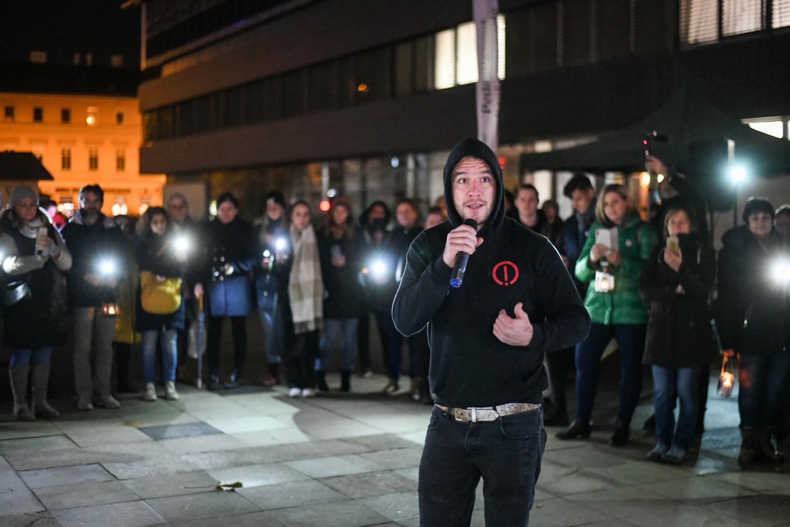 Mondott egy bestédet, aztán slamelt egyet Molnár Áron, színész, aktivista, a noÁr Mozgalom alapítója. is, aki szerint túl kell lépni a tüntetéseken, el kell foglalni az intézményeket és a hivatalokat.